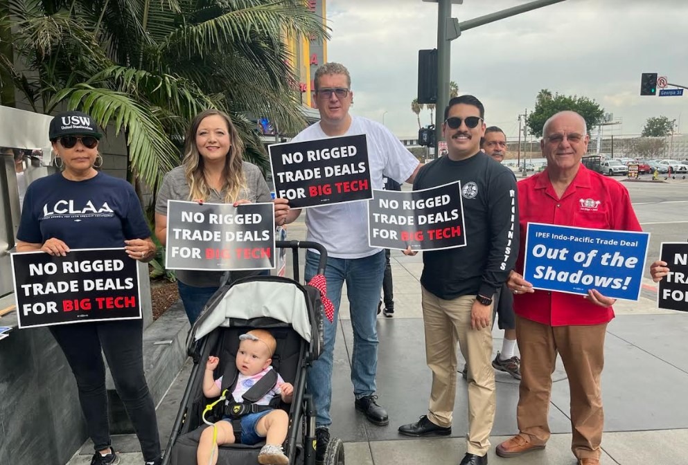 LOS ANGELES, CALIF. — As trade ministers from fourteen countries meet in Los Angeles today for behind-closed-door negotiations on the new Indo-Pacific Economic Framework (IPEF) trade agreement, labor and other civil society organizations rallied outside urging that proposals for the pact be released for public scrutiny and that the deal not be rigged in favor of Big Tech monopolies and other corporate interests.